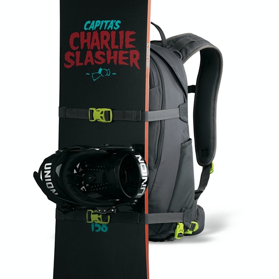 Промодель райдера Dakine - Austin Smith. Сноуборд-рюкзак с функцией крепления скейтборда. Есть карман для очков-маски и малогабаритной камеры. Удобные лямки и нагрудный ремень для переходов между спотами.