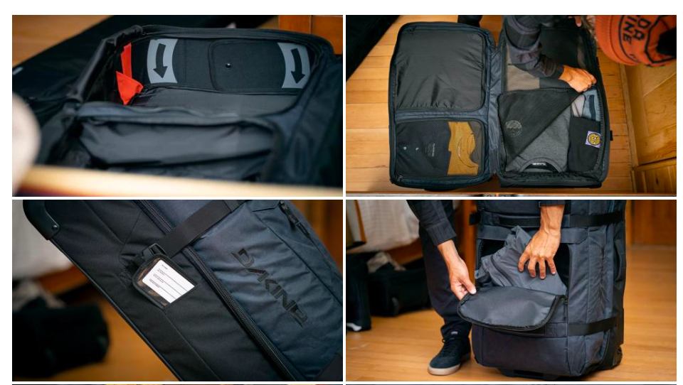 Dakine Split Roller Bag 85L — вместительная дорожная сумка на колёсах с двухуровневой системой организации вещей. Основное отделение разделено на две независимые зоны с сетчатыми перегородками, что позволяет удобно разделить сухие и влажные вещи, снаряжение и одежду. Запатентованная складная распорка Split-Wing Collapsible Brace обеспечивает устойчивость сумки в вертикальном положении. Усиленные молнии Bomber Oversize легко справляются с плотной набивкой. Прочные колёса и выдвижная ручка делают перемещение максимально комфортным даже с полностью загруженной сумкой.